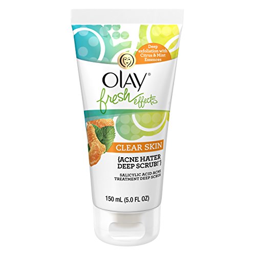 The next time you have a blemish or breakout well break out Olay fresh effects clear skin acne hater deep scrub salicylic acid acne treatment deep scrub. This exfoliating scrub has deep cleansing power plus acne-fighting ingredients. Formulated with 2% salicylic acid it penetrates pores to eliminate most blemishes and blackheads and also reduces excess oil. Its formula is oil-free and non-comedogenic so it wont clog pores. Plus its infused with the essences of citrus and mint for an invigorating experience. The result: a clearer complexion that will have you looking refreshed and ready-to-go no matter what the day has in store.Feature