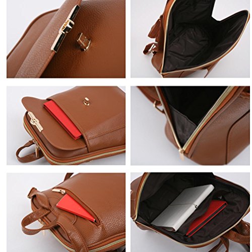 [Description] Simple backpacks_ cute and feminine type of small size backpack. it makes for a good backpack for an everyday use. The number of pockets: 3ea (inside 1ea : Large open pocket(fit 10.1-inch-Tablet PC) / outside 2ea : Front button turning lock pockets and Back zipper closure pockets) This bag does not fit A4 folder. But_ It``s big enough for 10.1 inch tablet and I can fit a folder in it as well. It``s does fit backpack for fashion. It``s Simple_ cute and feminine type of small bag. (12.6in(H) * 10.63in(W) * 4.3in(D)_ weighs 1.06LB_ Handle drop:2.7in) Artificial leather backpack with zipper closure. Adjustable straps to fit on back over shoulders. The bag is very nice and is made (sewing wise) very well. Also It is a great backpack for casual life. Ultra-durable. Ultra-awesome. The backpack is perfect for day-to-day use or occasional travel_ and gift for everyone. Also It``s such an awesome Daypack that you will receive many cute_ compliments from your family and friends.
