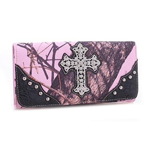 Title : Emperia Women's Ashley Mossy Oak Cross Tri-Folded Wallet with Rhinestones, Pink Camouflage/Black Trim, 7.5 x 1 x 4.5-Inch