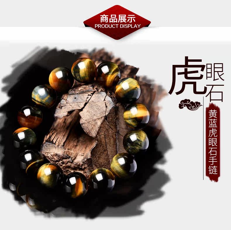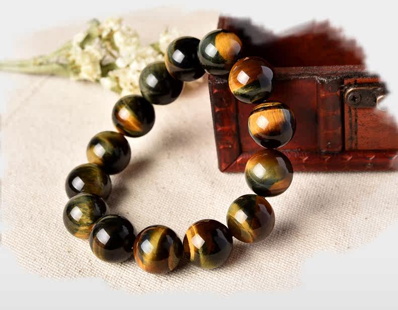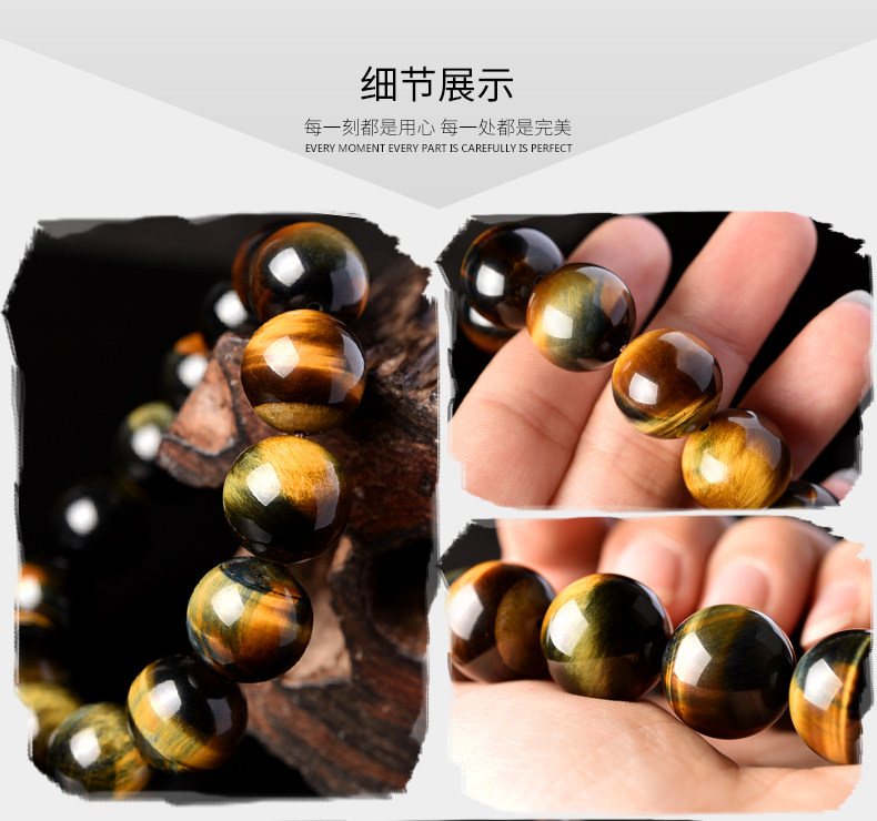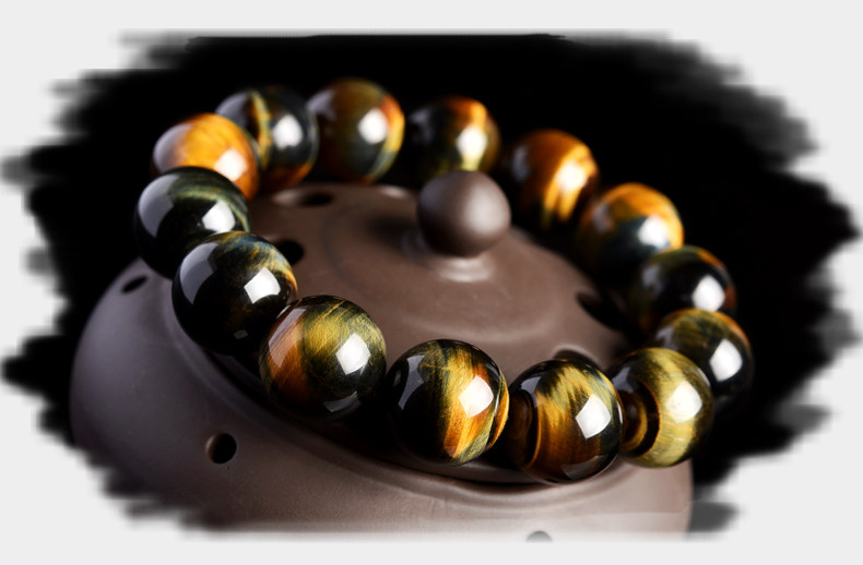 蓝虎眼石手链男16MM 大颗粒三色虎晴石单圈佛珠手串水晶饰品