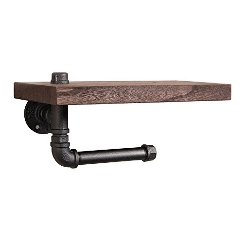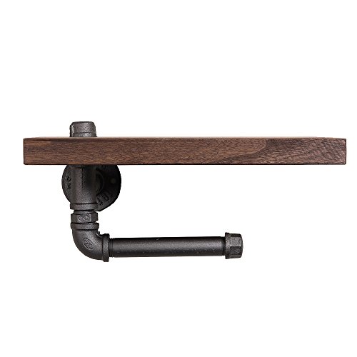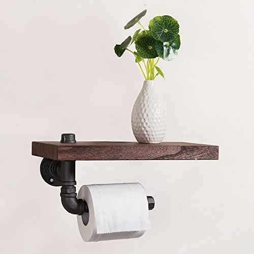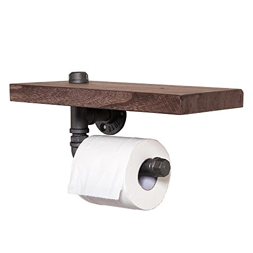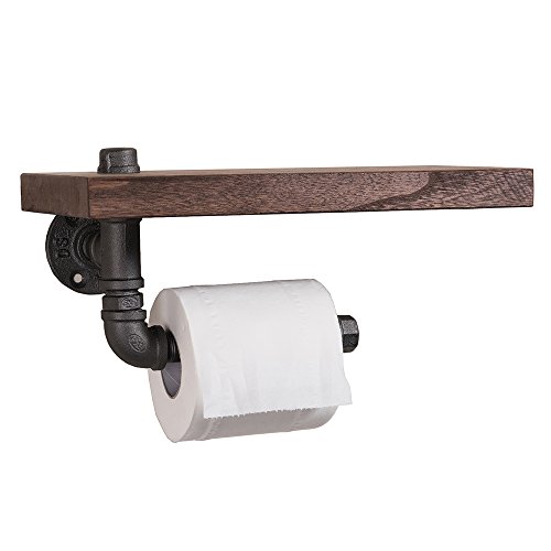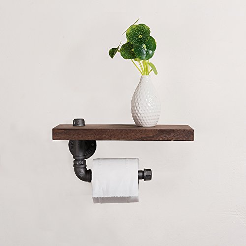 Vintage Wood Metal Wall Mounted Bathroom Shelf Toilet Paper Holder Roll Holder