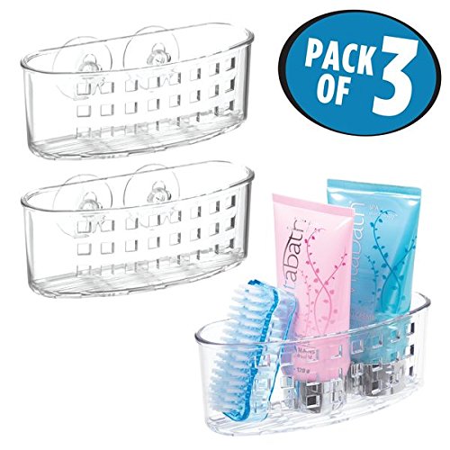 mDesign Bathroom Suction Shower Caddy for Soap, Razors, Shaving Cream - Pack of 3, Clear