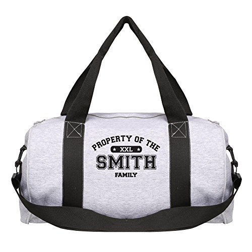 -. Binding : Misc. -. Brand : WHATONEARTH -. EAN : 0712131802223 -. Feature : Athletes, gym goers, and crossfit nuts will all cherish this individualized bag / Easily customized any name or phrase above "family" during order / Great personalized present for any athlete or student / T-shirts come in ultra-comfortable 100% cotton. The sweatshirts and hoodies are a comfy 50/50 cotton-poly blend / Feel free to get creative and enter any funny phrase or nick name you'd like! No offensive language please. -. Label : WHATONEARTH -. Manufacturer : WHATONEARTH -. NumberOfItems : 1 -. ProductGroup : Sports -. ProductTypeName : SPORTING_GOODS -. Publisher : WHATONEARTH -. Studio : WHATONEARTH -. Title : Unisex-Adult Personalized Property Of [Your Name] Sports Duffel Bag - Washable Sweatshirt Fabric - Sport Gray -. UPC : 712131802223