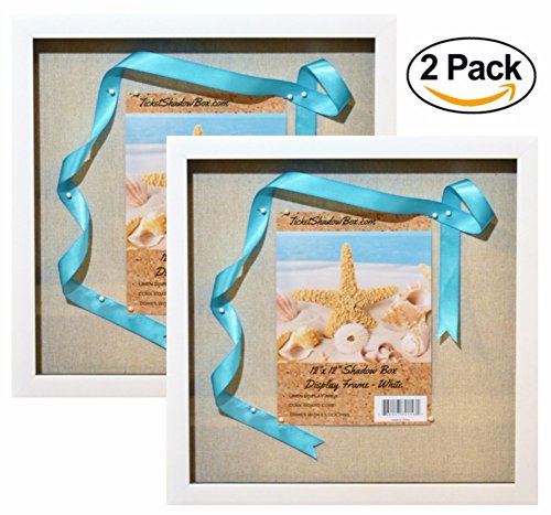 12x12” White Display Shadow Box Frame (2-pack) with Linen Background - Ready To Hang Shadowbox Picture Frame - Easy to Use - Box Display, Baby and Sports Memorabilia, Uniforms, Medals, Pins, Wedding.