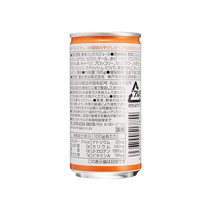 원본상품명: 神?居留地 16種類のやさいとくだもののジュ?ス 185g×30本