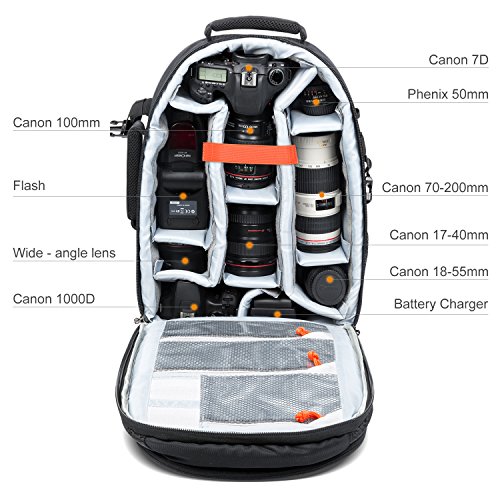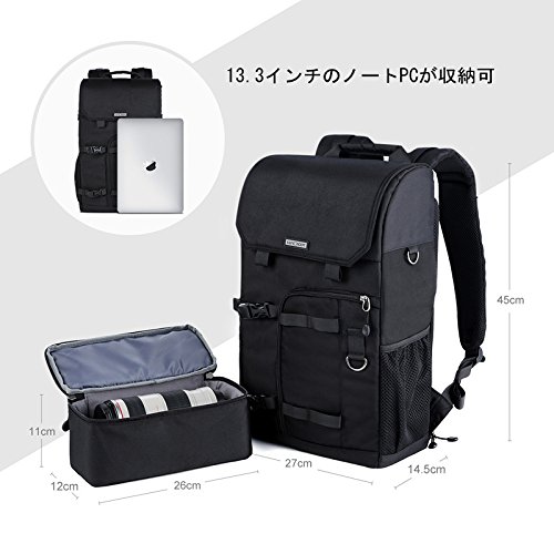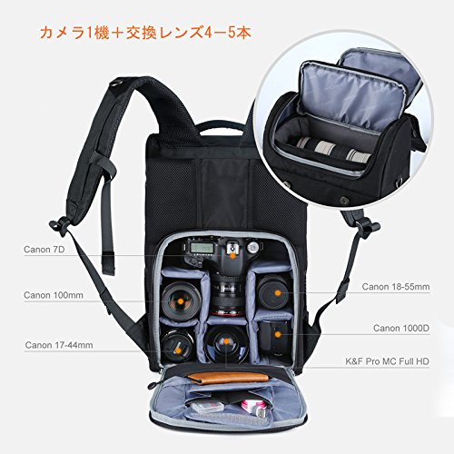 -. Title : K&F Concept カメラバッグ カメラ 一眼レフ用 防水 大容量 三脚収納 Canon Nikon Sony などデジタル一眼レフカメラ専用 ミラーレスケース レインカバー付き