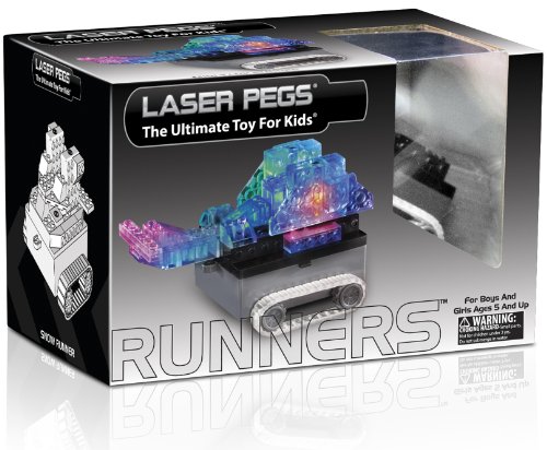 -. Feature : Includes 2 Laser Pegs, 24 construction parts, a Runner Power Base and Model Instructions / Build the motorized light up Mini Tank and 5 more light up models like the Amphibious Vehicle, R1 Tank and the Recon Runner / Once connected to a power base, each Laser Pegs shape feeds the next to light up as you build / 3 Light Settings: On, Fast Flash, Slow Flash; Laser Pegs' unique design makes them compatible with other major construction kits / 100% recyclable, LED life expectancy of 100,000 hours or 11 years, 90 day no questions asked warranty