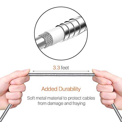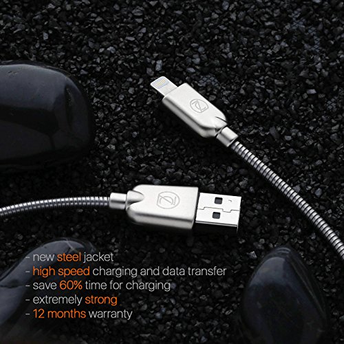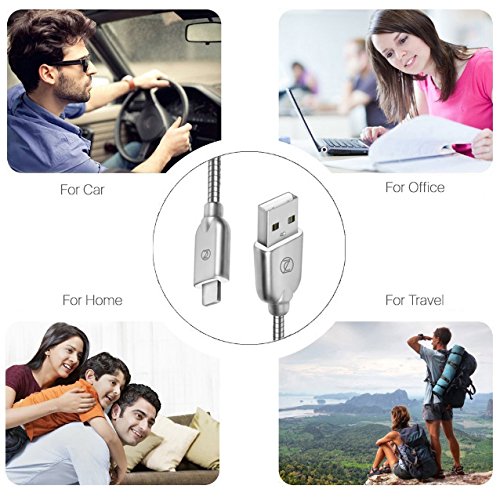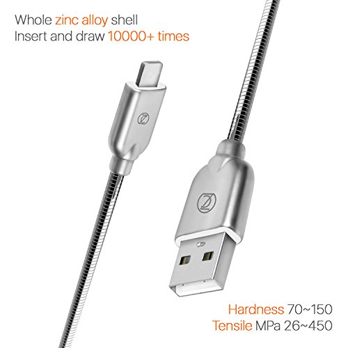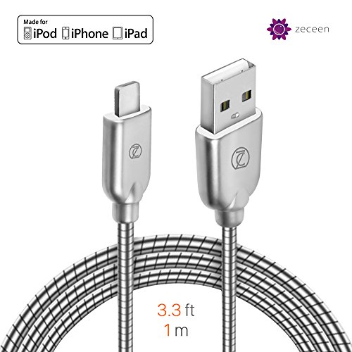 ZECEEN Metal USB Lightning Cable – Fast Charging & Data Transfer Cable (3.3 ft) – Almost Unbreakable – Bending & Weather Resistant – Compatible with iPhone 7/6s/6/5s/5/SE, iPad Pro/Air/Mini