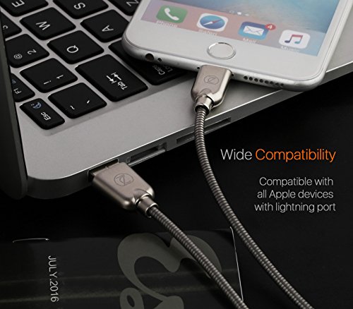 COMPATIBILITY CHECK – Usually housings of a cable would prevent it from being compatible with many devices. However, given the thoughtful design, our Lightning to USB Cable or simply lightning cable is compatible with almost all APPLE devices – be it iPhone 7 / 7 Plus / 6s / 6s Plus / SE / 6 / 6 Plus / 5s / 5, iPad Pro / Air / Air 2 /Mini, iPod touch. The metal braided design has heavy duty construction, and is almost unbreakable with reinforced military grade shielding, and even pet-proof!