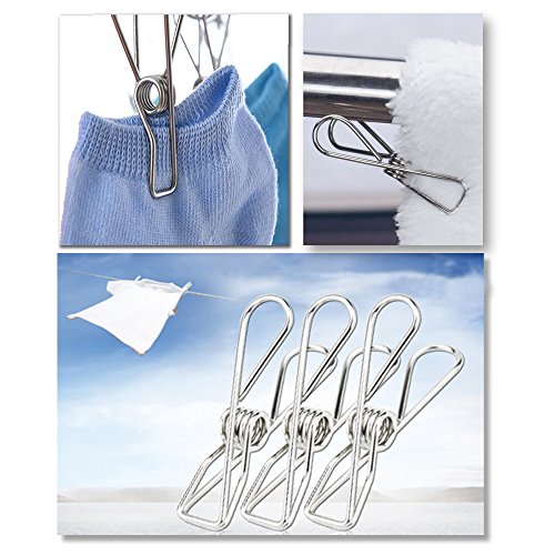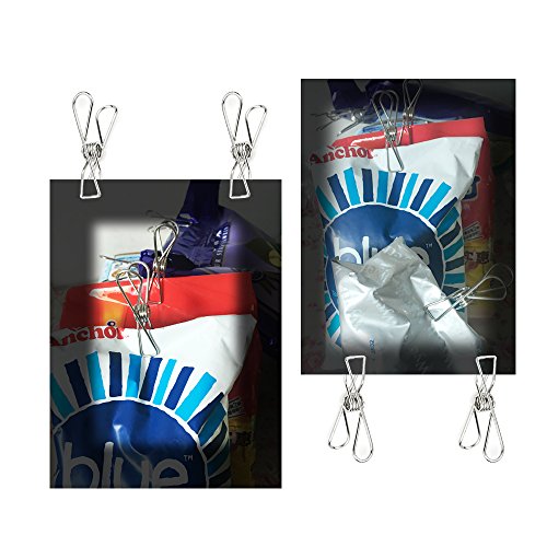 - Multi-purpose metal wire clips is strong enough to hold baby clothes, underwear, scarfs, just the right size for drying socks, gloves etc, can hold bags closed at home or office, also can mark your pages in a book or important spots on a document etc.