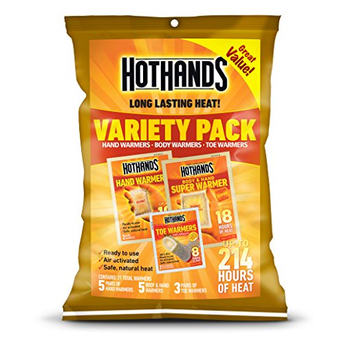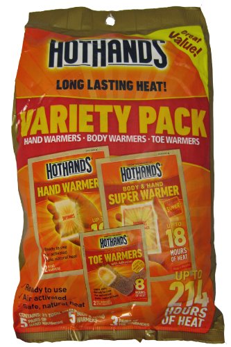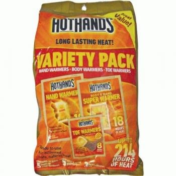 Studio : Hot Hands Publisher : Hot Hands Binding : Misc. Product Description HotHands-2 Variety Pack The HotHands-2 Variety Pack provides you warmth and freedom to endure cold climate situations. They are used by professional athletes, golfers, spectators, skiers, construction workers, outdoor sportsmen, and by those who want safe, convenient, concentrated warmth. Hothands contain ingredients like iron, activated carbon, and water. Once these ingredients come into contact with the oxygen in the air, the ingredients oxidize and produce heat. The combination of ingredients has been specially formulated to ensure a constant and comforting heat for a wide variety of uses. Additional features: Five pairs of hand warmers Five body warmers Four pairs of adhesive toe warmers Provide up to 214 total hours of heat 0
