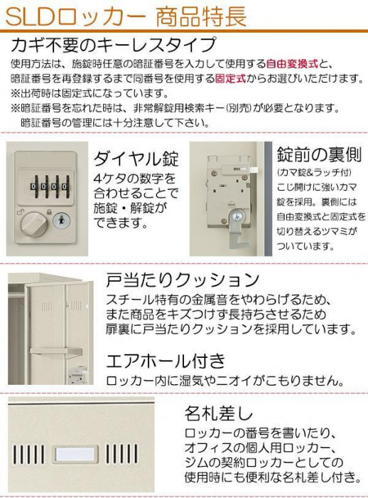 | カギの持ち歩きは不要!!4ケタの数字で施錠・解錠ができるダイヤル錠タイプのロッカーです。こじ開けに強いカマ錠を採用しています。オールメカ式なので面倒な配線工事や電池切れの心配もありません。 |