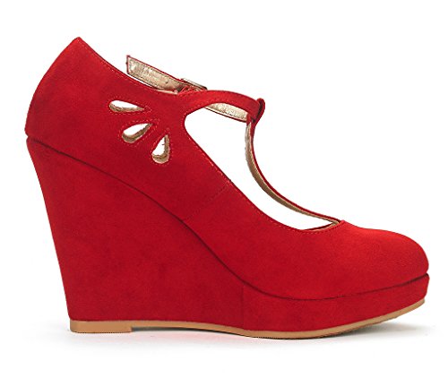 Product Description Make your style daring with these fashionable WEDGES! Featuring faux suede upper, round toe, stitching detail, wrapped platform, and wedge heel. Finished with cushioned insole for comfort. The shoe is medium width and runs true to size 0