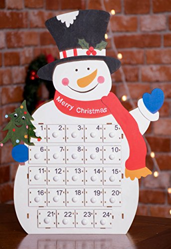 GREAT HOLIDAY DESIGN: This advent calendar features a smiling snowman wearing a merry Christmas scarf and waving.