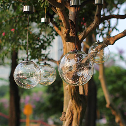 SingDeRing Rechargeable Solar Glass Ball Led Lights, Outdoor Waterproof Solar Night Lights, Solar Powered Micro LED String Lights, Solar LED Lamps for Garden (7.9 inches)
