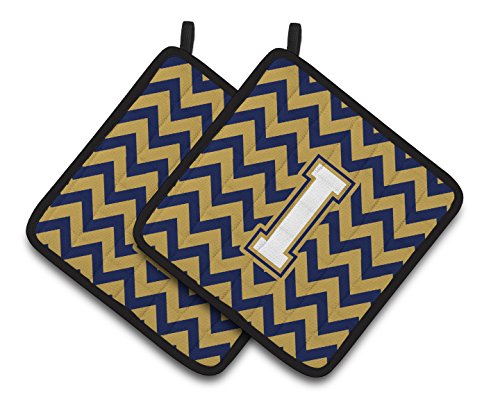 Caroline's Treasures Letter I Chevron Navy Blue & Gold Pair of Pot Holders CJ1057-IPTHD, 7.5HX7.5W, Multicolor