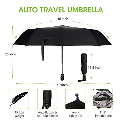 -. Title : Pictek Windproof Umbrella, Auto-open Anti-uv Inverted Travel Umbrella Compact Mini Folding Umbrella for Women Man & Kids, 210T Teflon Coated Canopy