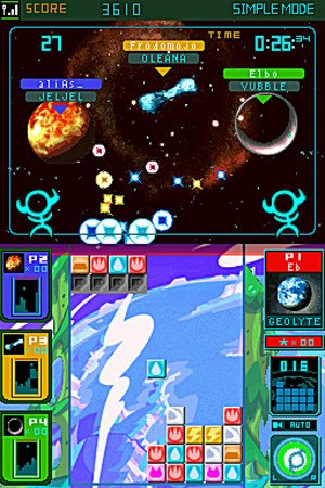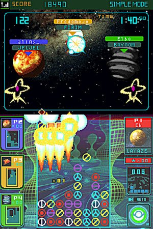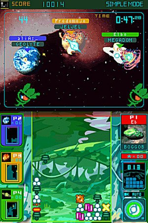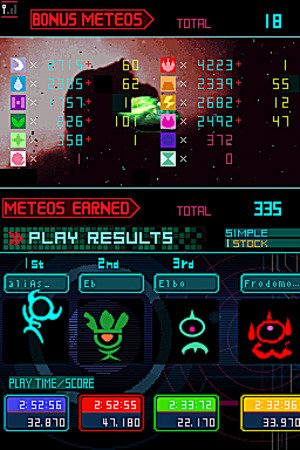 -. Feature : Defend over 30 planets, each with its own alien race, theme music, block style, and gravitational laws / Universe of game modes -- Explore planets in Star Trip, challenge CPU players of any skill, play Multiplayer, survive Endurance Mode, or spend your launched Meteos to unlock new planets and features / Link wirelessly with up to three friends and have a war of the worlds as you select which planet to launch your Meteos toward / Share the fun! Using Download Play, you can take on three friends with only one Game Card!
