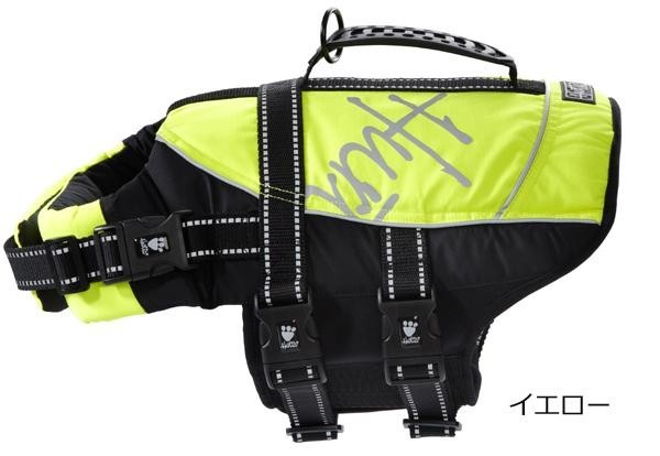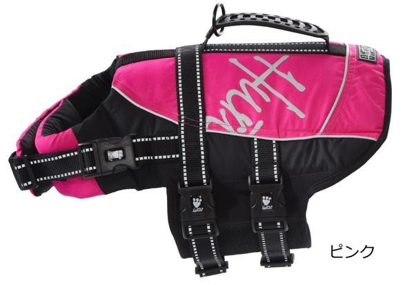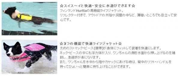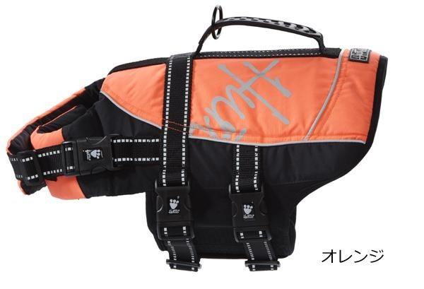 | ●カラーは水中でも目立つイエロー、ピンク、オレンジの3色をご用意! | | ●メーカー開発の新素材Houndtex(C)を使用。 | | ●ストラップと背面ロゴは、3Mリフレクター仕様で、暗いところでも光る! | | ●首、胸部、腹部3ヶ所のアジャスター・ストラップ装着方式だから、ワンちゃんにぴったり! |
