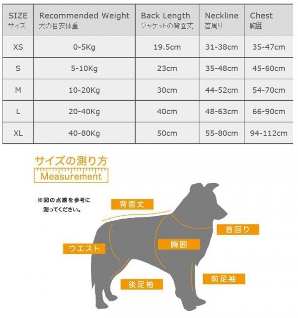 | ◆サイズは基本、ワンちゃんの体重を目安にお選びください。