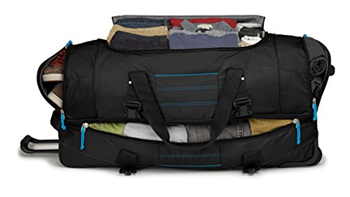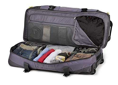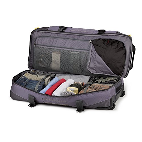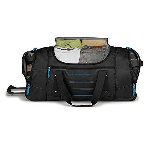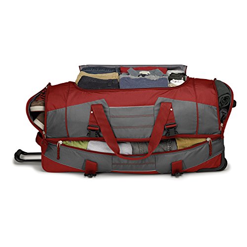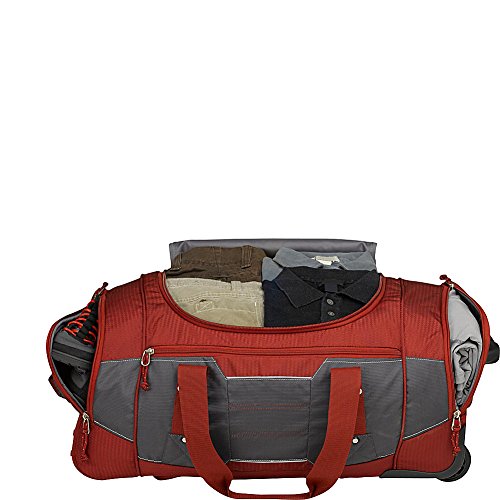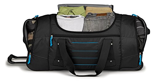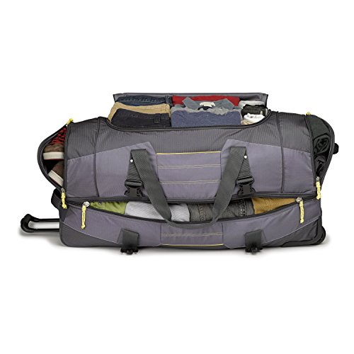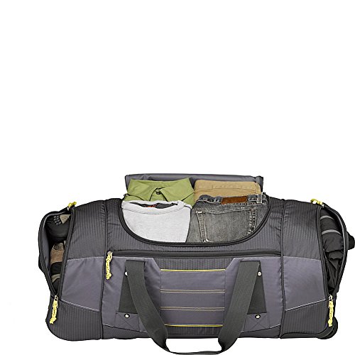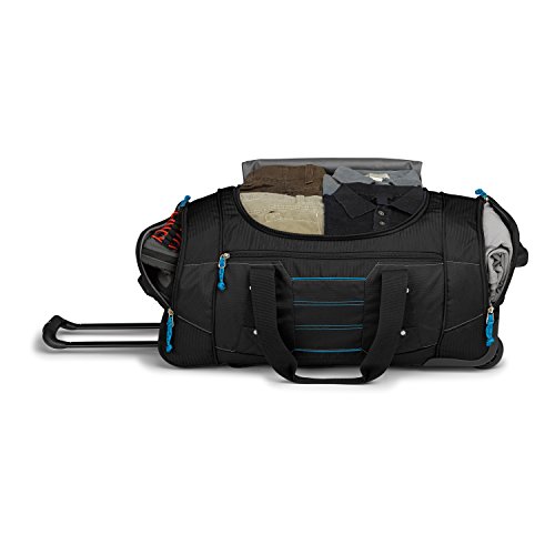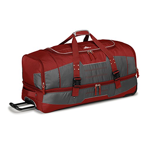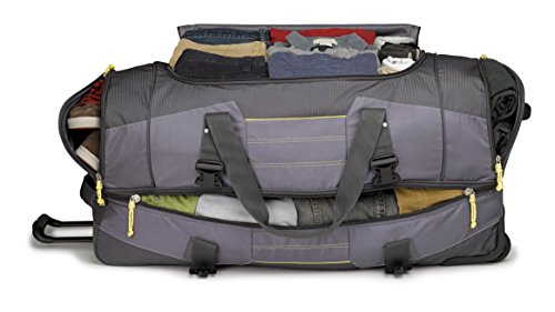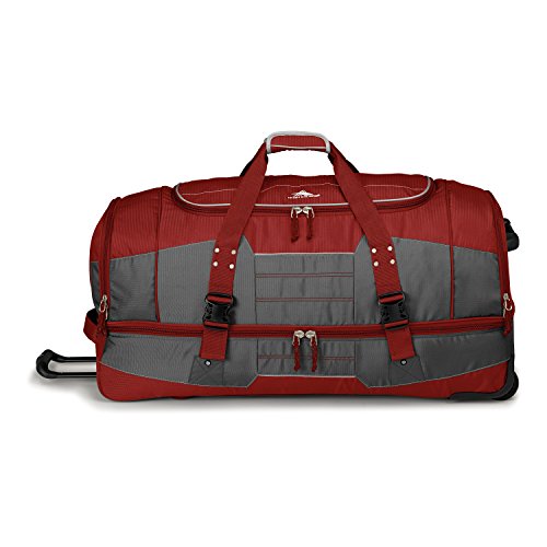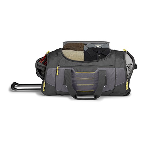 Studio : High Sierra Publisher : High Sierra Binding : Sports Product Description ; It's two bags in one! Use it as a wheeled duffel or wear it like a backpack.; Hidden padded backpack straps are stored behind the zippered padded bottom panel.; Main compartment with easy-access U-shaped opening.; Durable webbing handles with comfortable handle wrap.; Oversize, skate-style wheels are inset into corner-mounted wheel housings.; Recessed, telescoping handle system.; Capacity - 4148 cu. in.; Weight: 7.1 lbs.Body Dimensions: 26.0" x 13.0" x 12.0" 0