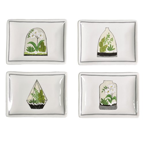 Creative Co-Op Cacti and Orchids Terrariums 4" x 3" Trinket Plates, Set of 4