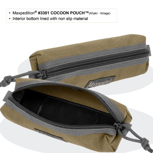 -. Feature : Overall: 2 in diameter x 8 in long / Attach: 3-Inch TacTie (sold separately), SlikClip (included) / Reminiscent of a butterfly chrysalis, the MAXPEDITION Cocoon Pouch