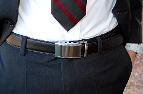 Say Hello to the last belt that you will ever need! This black leather ratchet belt looks great and professional and is super easy to get on and off. This belt has genuine, black leather with a nice, clean gold buckle. It also comes with the perfect gift box, making this a great present for any occasion! This belt is useful, looks great, and has long lasting quality. This is truly the belt of the future!