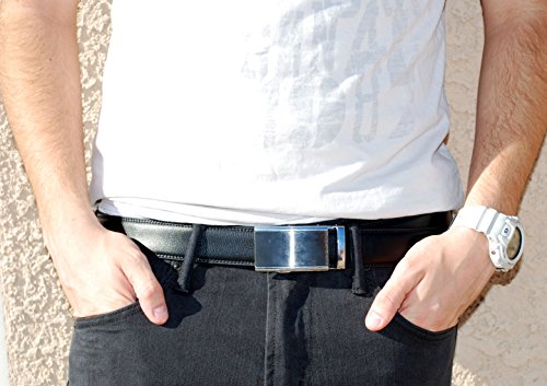 Our NO HOLES slide men's ratchet belt is made from 100% TOP QUALITY LEATHER and it is made to last. NO HOLES means there is NO wear, tear, ripping or cracking where the holes are!
