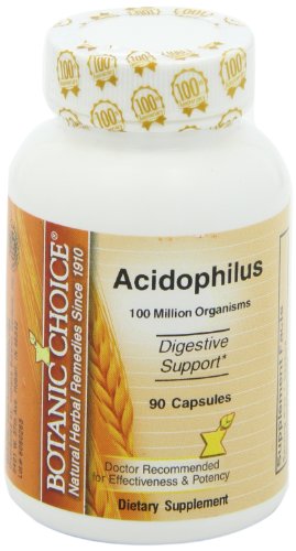 ReleaseDate : 2008-06-03 Studio : Botanic Choice Publisher : Botanic Choice Binding : Health and Beauty Product Description Acidophilus aids digestive and overall health naturally. It promotes intestinal health by restoring a natural balance of healthy bacteria. Each capsule provides a minimum of 100 million colonies of Lactobacillus Acidophilus (friendly bacteria) with 100 mg. of apple pectin cellulose. 0