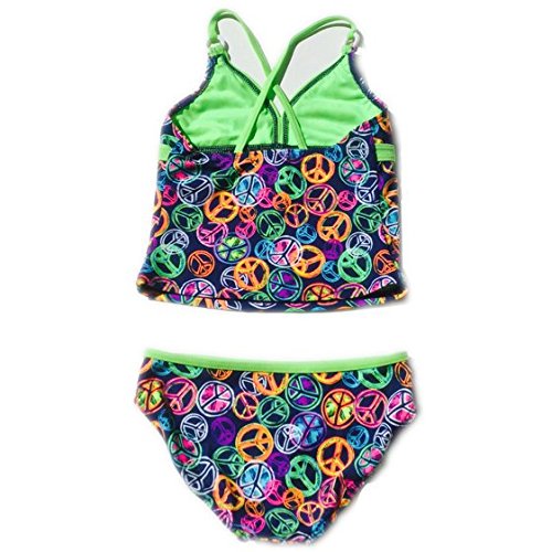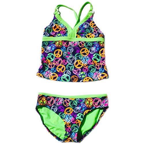 • 2-Piece Girls Swim Suit with Peace Logo Design (Size M-7/8)