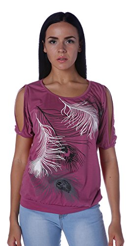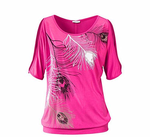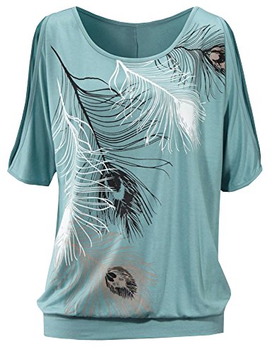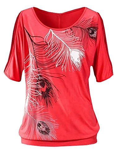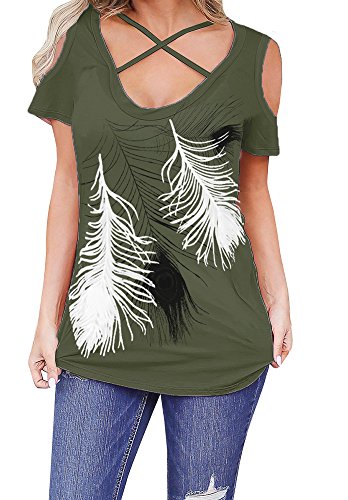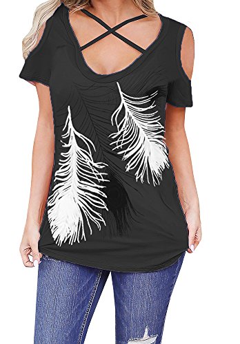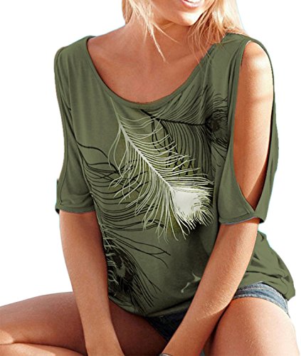 | Lovaru Women's O Neck Feather Print Shirt Casual Cutout Sleeve Top Blouse |