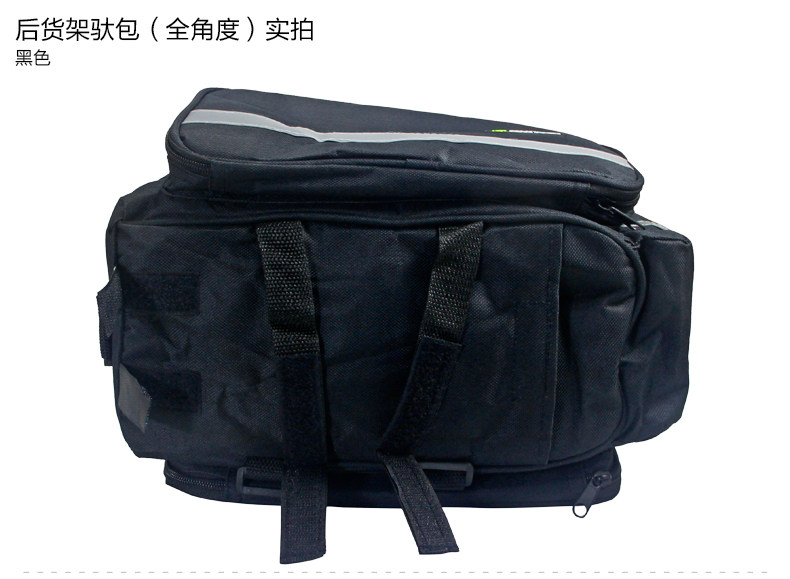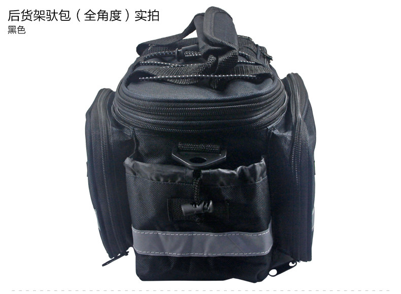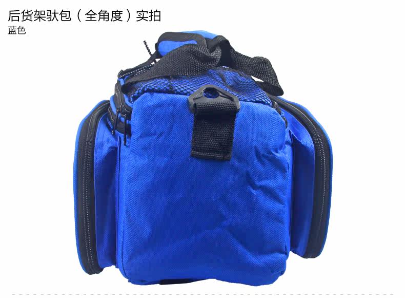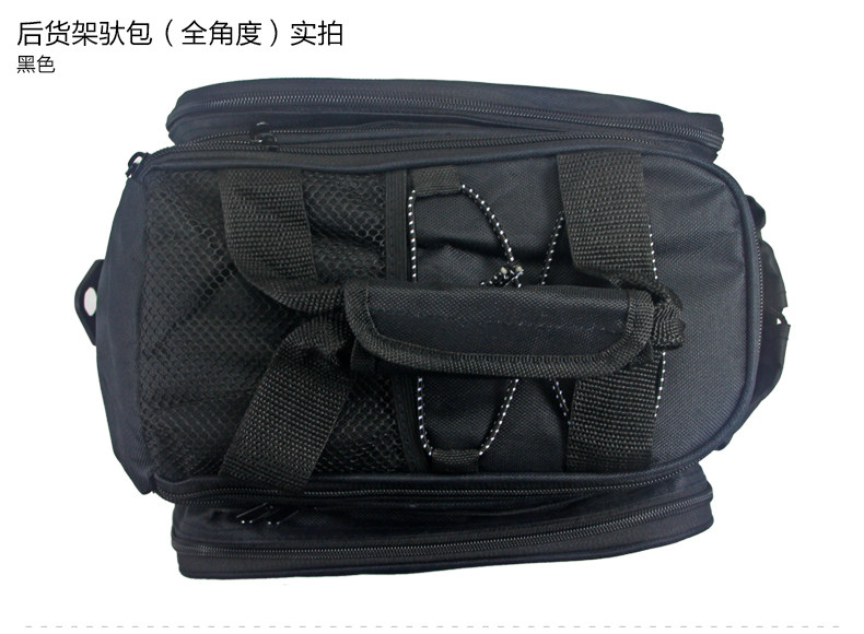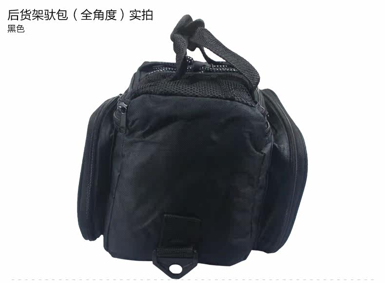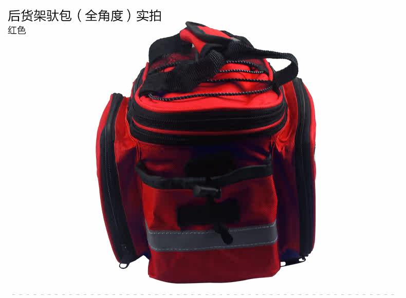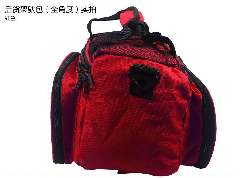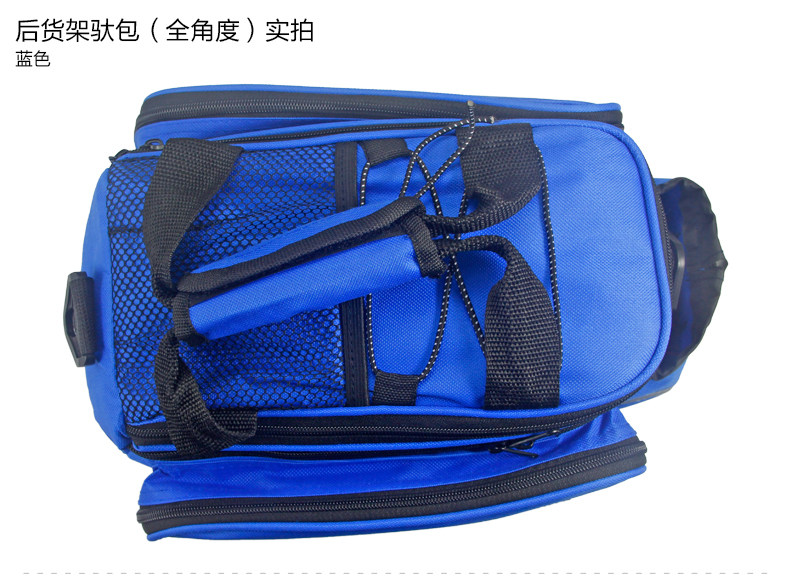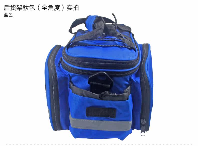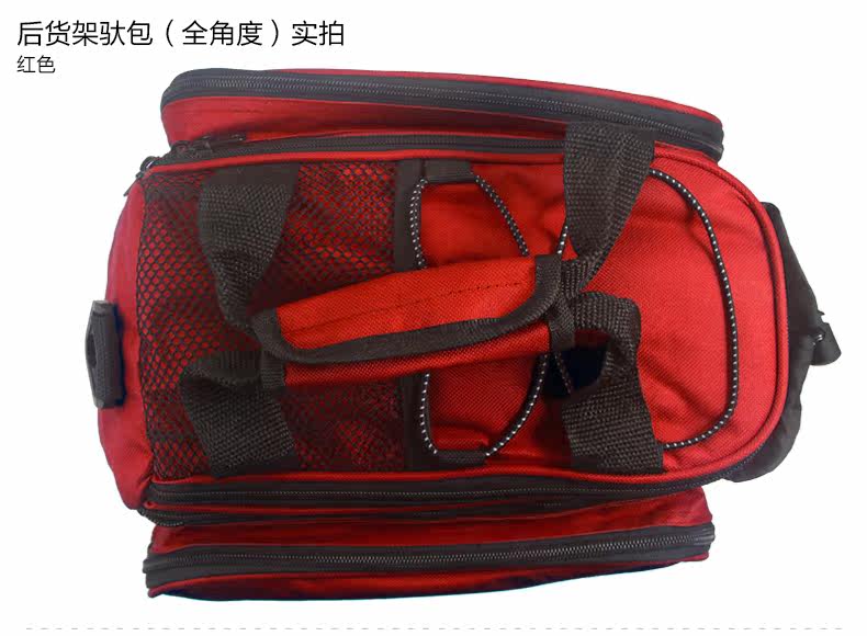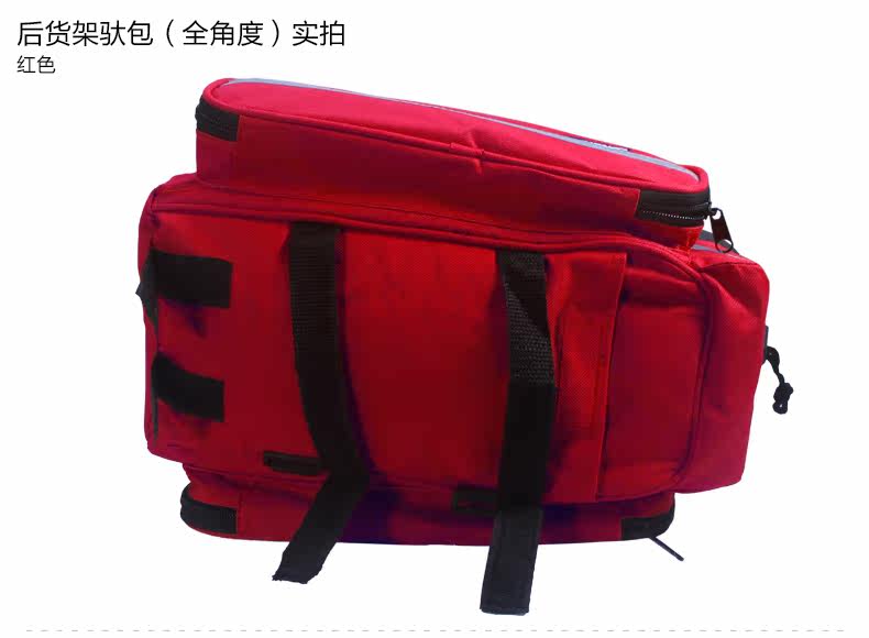 ●驮包展开后形成一个带两侧包的短途旅行车载驮包 ●车包材料本身有很好的防水涂层 ●驮包主体的大包可以用来放一些日常用品 ,因为底部有很厚的垫层 ,可以起到很好的防震效果 ●两侧和后面有反光条 ,能起到很好的低照度下的警示作用 ●后侧:可以放一个标准水壶甚至大可乐 ,后侧有反光条 ,确保夜行也起到警示作用 特点: 1 .安装方便 ,不需要任何工具 2 .方便实用 ,下车拆除后 ,可以作为提包使用 3 .容量够大 ,其实装了很多东西都没把它装满 ,4天内的短途已经足够了 4 .做工设计相当完善 ,有反光条 ,各个方位都能看到