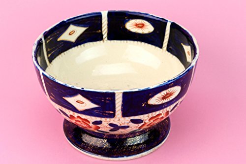 (Lavish Shoestring)/Kitchen Dining/Bar Tools Glasses/DIRECT FROM USA/Medium Pottery Punch Bowl High Victorian Blue and White Imari Red Antique Victorian English 19t...