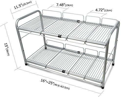 Surpahs 2 Tier Under Sink Expandable Shelf Organizer, Storage Rack (Silver)