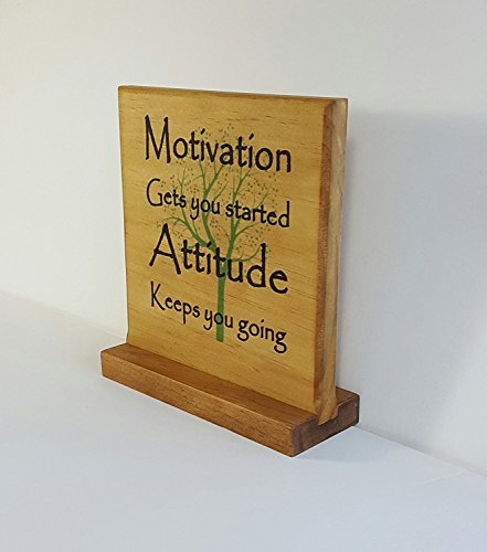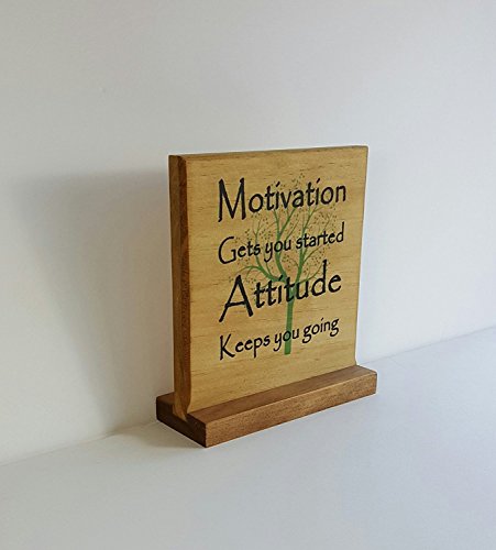 Motivation Gets You Started- Solid Wood Office Desktop Sign 7"x7" Office, Work, Birthday Gift, Holiday Present