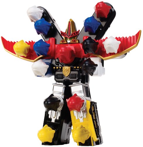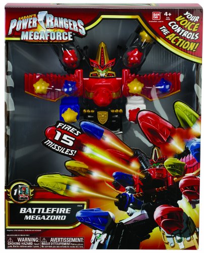 Battle evil wherever it may lurk with the ultra-powerful BattleFire Ultra Gosei Great Megazord! Whenever the villains get too strong the Megaforce Power Rangers summon all of their Zords together to morph into this powerful weapon. With this amazing Megazord, your voice commands the action! Fire up to 15 Zord Missiles at the villains utilizing the Rangers' incredible voice recognition technology! The BattleFire Ultra Gosei Great Megazord will fire off a different number of missiles depending on what phrase you use, or use the simple manual trigger to fire the missiles yourself. Lights and sounds add to the excitement of this awesome Megazord. Target your enemies and save the day!