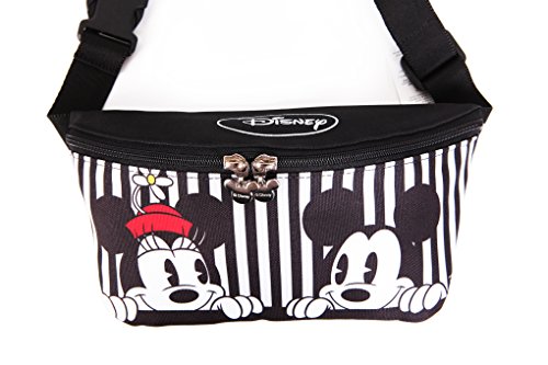 Disney Mickey Minnie Mouse Zippered Waist Fanny Pack Belly Bag for Travel Belt Bag (Stripe Mickey Minnie)