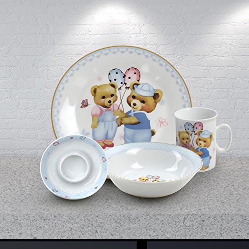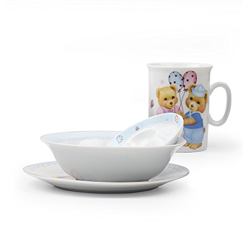 Studio : HJC(HK)CO.,LIMITED Publisher : HJC(HK)CO.,LIMITED Product Description This pretty bear porcelain dinnerware set specially designed for the children. Simple and unique pretty bear pattern may attract attention of your kids, inspired your children to eat his/her food with the bears on it. Also, purchased as baby gift so little girl or boy can have pretty procelain dinnerware set during the "formal" family gatherings like Thanksgiving, Christmas, etc.
