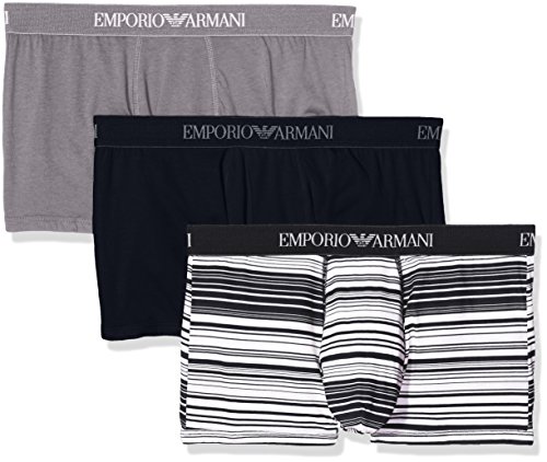Emporio Armani Men's Cotton Trunks, 3-Pack, Marine/Marine Stripe/Iron, X-Large