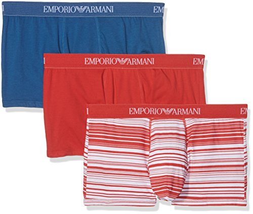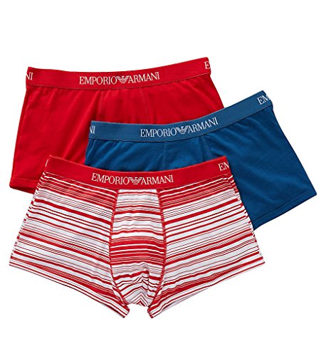 Emporio Armani Men's Cotton Trunks, 3-Pack, Red/Red Stripe/Pencil Blue, X-Large