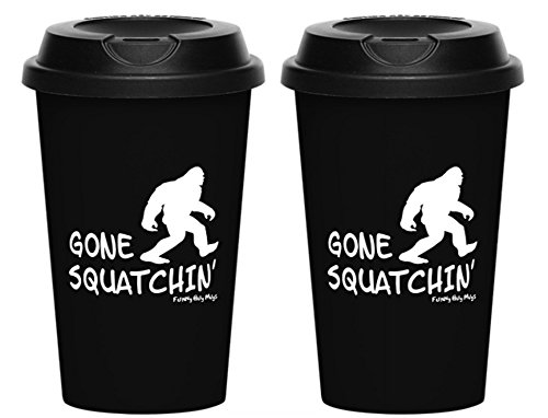 Funny Guy Mugs Gone Squatchin' Travel Tumbler, Black, 16-Ounce