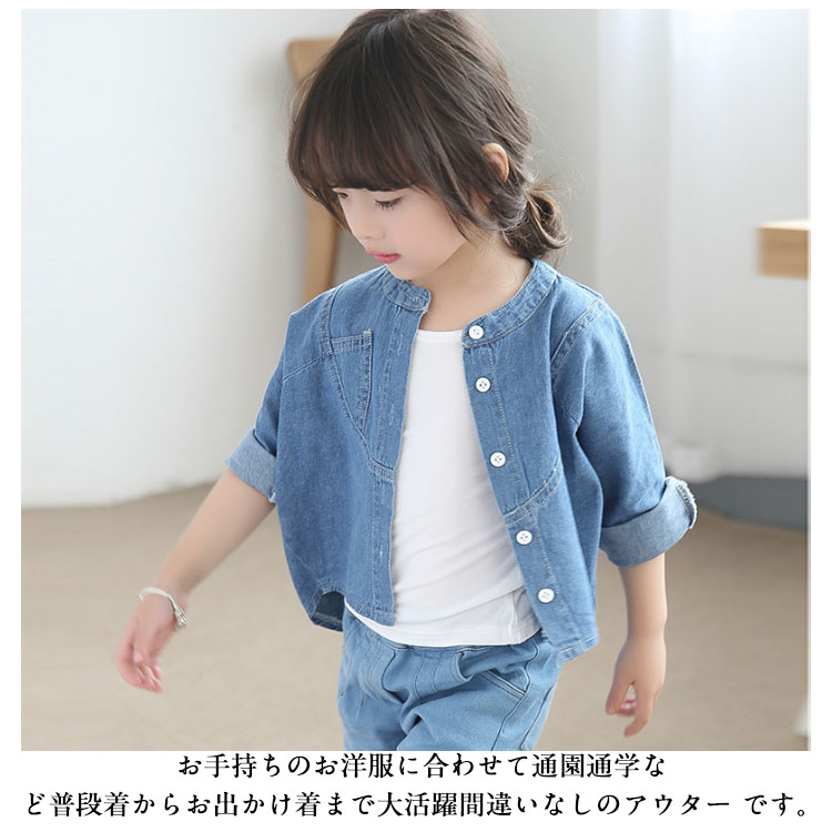 | 1枚でコーデが決まるオシャレさん必見のデニムジャケットです。肌触りがとっても気持ちいい素材から作られ、お子様も大満足して頂きます。お手持ちのお洋服に合わせて通園通学など普段着からお出かけ着まで大活躍間違いなしのアウター です。遠足や旅行などのお出かけにもピッタリの1着です。 | |