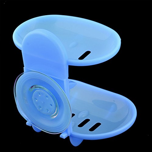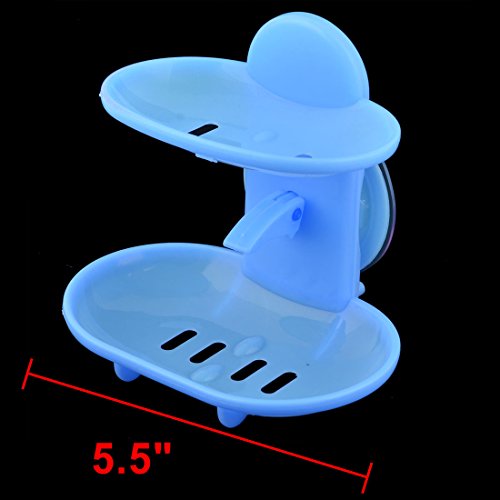-. Title : uxcell Plastic Family Double Layers Suction Shower Soap Holder Dish Container Box Blue