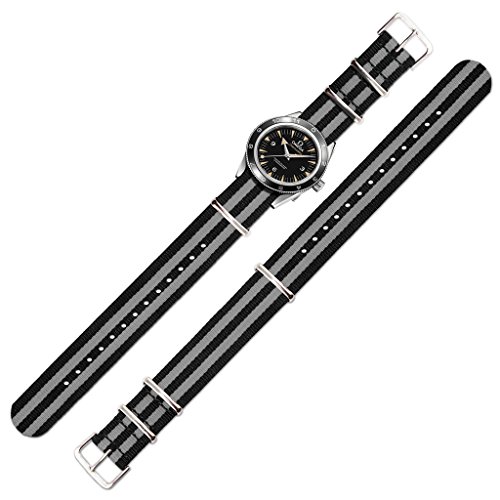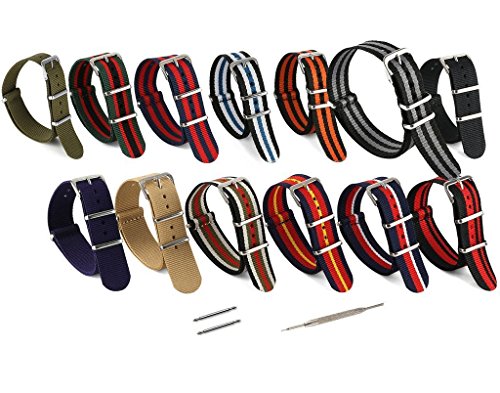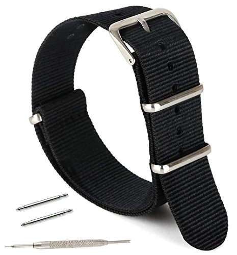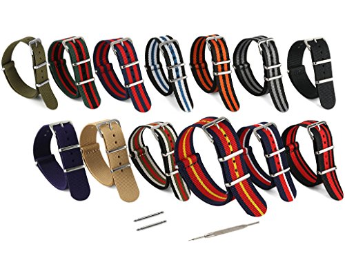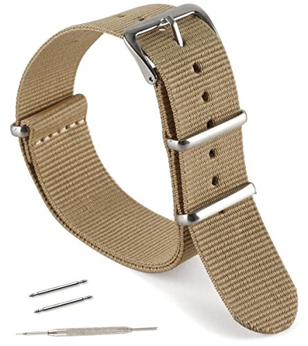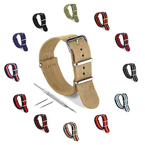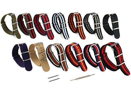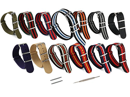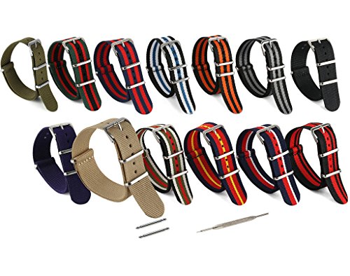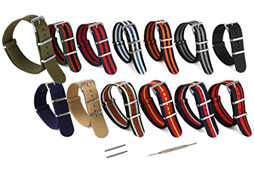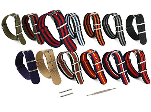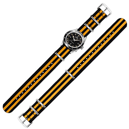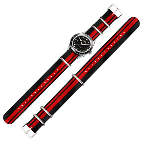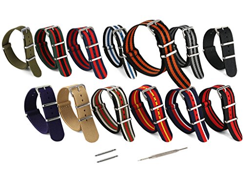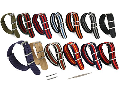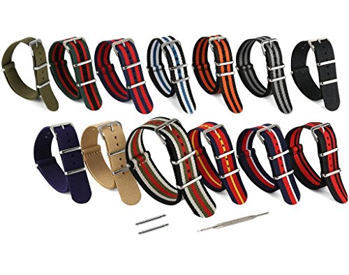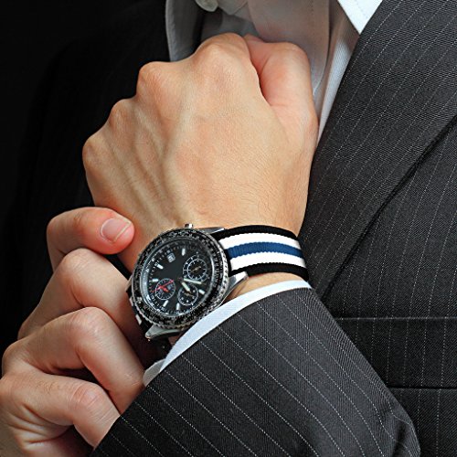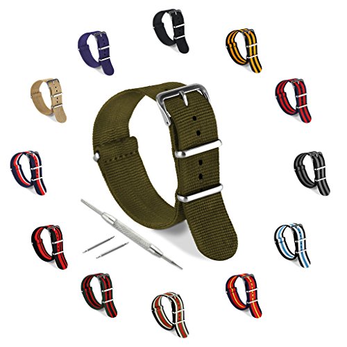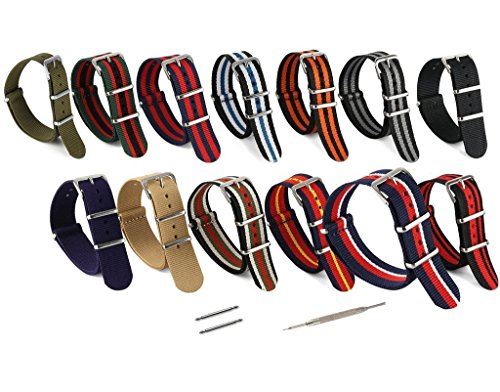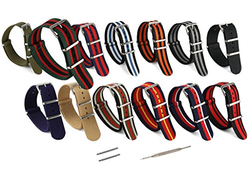 United Watchbands NATO nylon wristbands come in an assortment of exciting colors and styles that are sure to work with your wardrobe and lifestyle! Made from a super strong nylon fabric which withstands changes in temperature and activity, these wristbands are made for long-term use. They are waterproof, and come with the special addition of two stainless steel buckles to secure on your wrist in just the right place. Stainless steel has been used in hospital settings for years for their revered sanitary qualities, and is utilized here as well for the buckle and loops, thus rendering the product to be sweat-proof and have anti-microbial properties. These wristbands can be used with different watch faces and decorative bezels, so that they are effective for any situation, from office meetings to exercise routines. They do not keep odors, or shrink with wear or wash, and are thus guaranteed to remain at their highest quality!