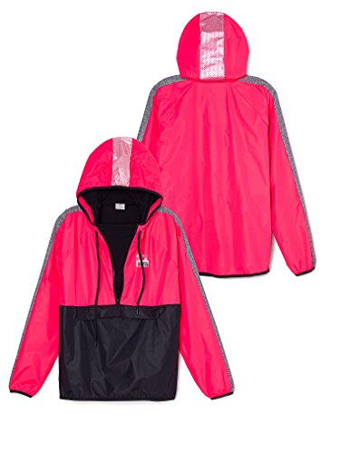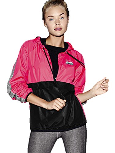 Product DescriptionFrom the Victoria's Secret "PINK" Collection - Anorak Half Zip Hoodie, Front half zip closure, front pocket, Printed "PINK" logo at left chest and printed stripe on hood, Fleece lined, drawstring hood0
