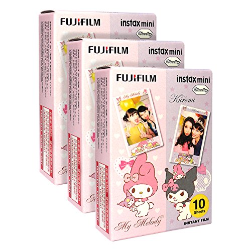 Suitable for Fujifilm Instax Polaroid Camera 7/ 7s/ 8/ 10/ 25/ 30/ 20i/ 30i/ 25i/ 50i/ 55i/ 50s/ 90 Suitable for Fujifilm Instax Share SP-1 Suitable for Polaroid Camera 300 Expiry Date : 2016-05 or later. Size : 86 x 54 mm Package Included : Fujifilm Instax Mini Melody and Kuromi Instant Film x 3 Boxes ( 30 Films )Feature