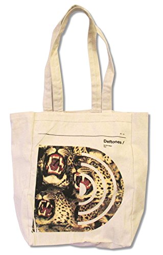 Product Description Deftones natural colored heavyweight canvas tote bag with leopard image "D" logo and "Deftones Koi No Yokan Tour" text printed on one side. 0
