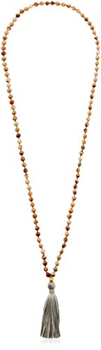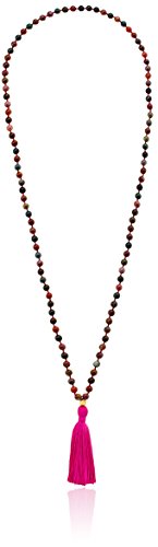 108 Hand-knotted smooth 6mm Picture Jasper stones make up this 32-inch mala necklace with an 18kt gold plated lotus bead and 3-inch silk tassel.