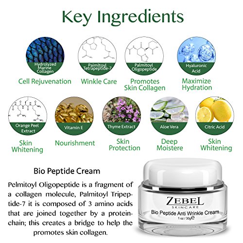 Bio-Peptide Anti-Wrinkle Cream with Palmitoyl Oligopeptide, Tripeptide-7, Hydrolyzed Marine Collagen, Vitamin E, Aloe Vera - Zebel Skincare